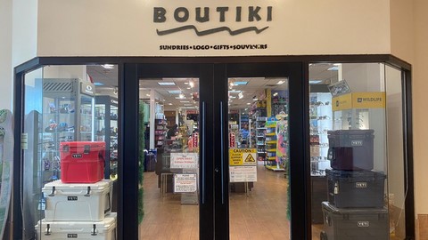 ギフトショップ「ブティキ」は、日用品からサーフブランド、輸入品や水着にサングラス、お土産もございます。