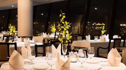 タモン湾を望むオーシャンビューが魅力の店内。日本の一流ホテルで経験を積んだ、日本人シェフによる伝統の中国料理をランチブッフェやディナーコースでお愉しみください。ランチブッフェでは毎週変わる季節の素材を活かした品揃え、ディナーでは本場中国の広東料理が楽しめるシェフおすすめフルコースも人気。タモン湾に沈む夕日は絶景です。